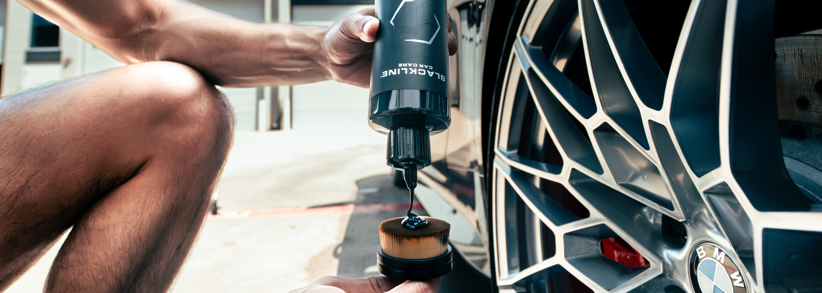 Apply a small amount of Blackout to a tire applicator brush or pad and spread evenly across the sidewall. Work it into the rubber for full coverage.