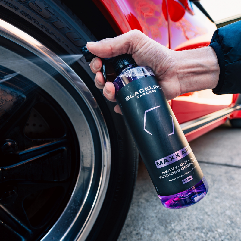 Break down brake dust and tire browning before restoring deep, clean black with Blackout.