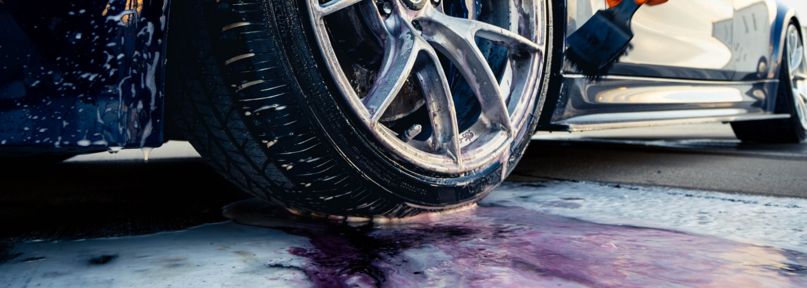 For Wheels: Once the wheels are cool to the touch, spray iron-remover directly onto the faces and inner barrels. agitate with a blackline detail brush and rinse with water.